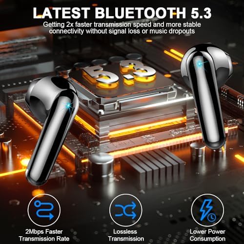Wireless Earbuds, Bluetooth 5.3 Headphones Bass Stereo, 50H Playback Ear Buds ENC Noise Cancelling Mics, in Ear Earphones with mini Case, IP7 Waterproof Wireless Headphones USB-C Charging, LED Display